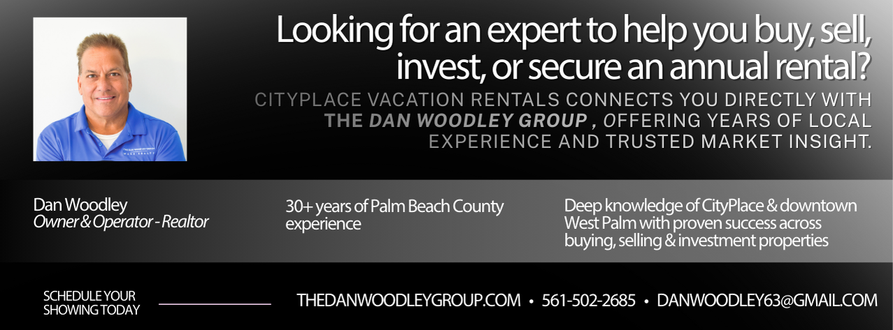 Welcome to CityPlace Vacation Rentals! Renting in the Palm Beaches since 2007. 1 – 2 – 3 bedroom condos, single family homes, guest house and condo hotels. We are a full service Property Management Company and Licensed Real Estate Agents, Located in Rosemary Square – CityPlace
