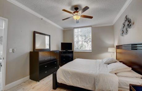 MASTER BEDROOM: KING SIZE-BED, DRESSER, 2 NIGHT STANDS, 32″ FLAT SCREEN TV, WALK-IN CLOSET, LINEN CLOSET